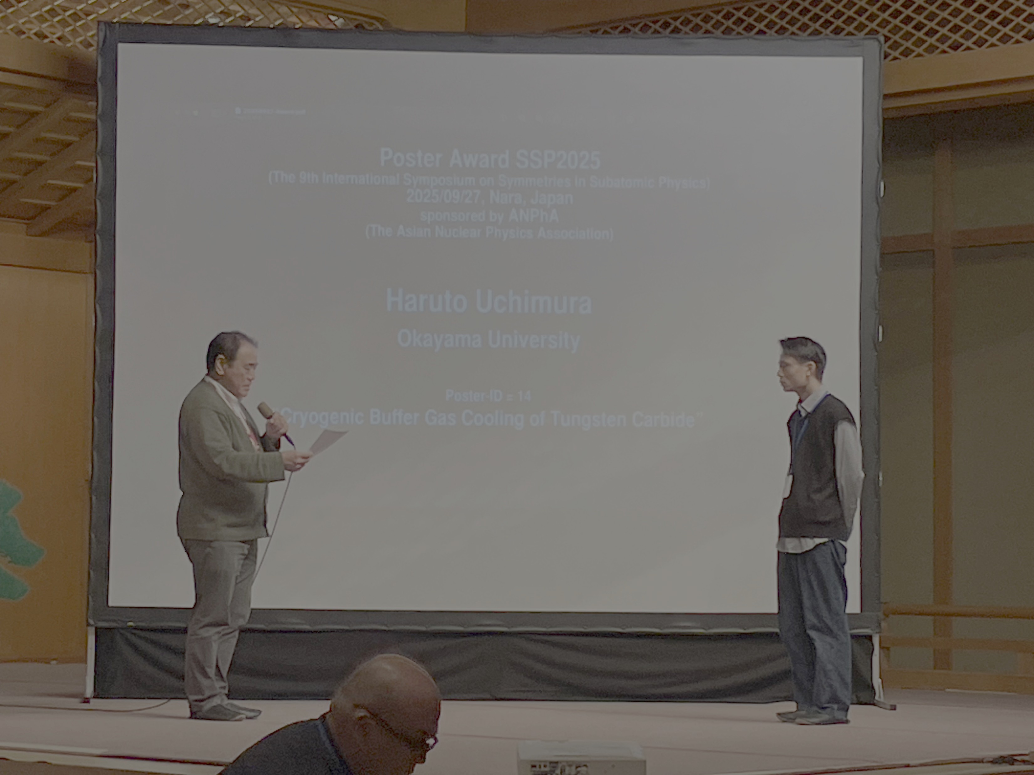 Harutoshi Uchimura (First-year Master's Student, Quantum Cosmology and Fundamental Physics) received the ANPhA Award for the Best Poster Presentation at The 9th International Symposium on Symmetries in Subatomic Physics (SSP2025).